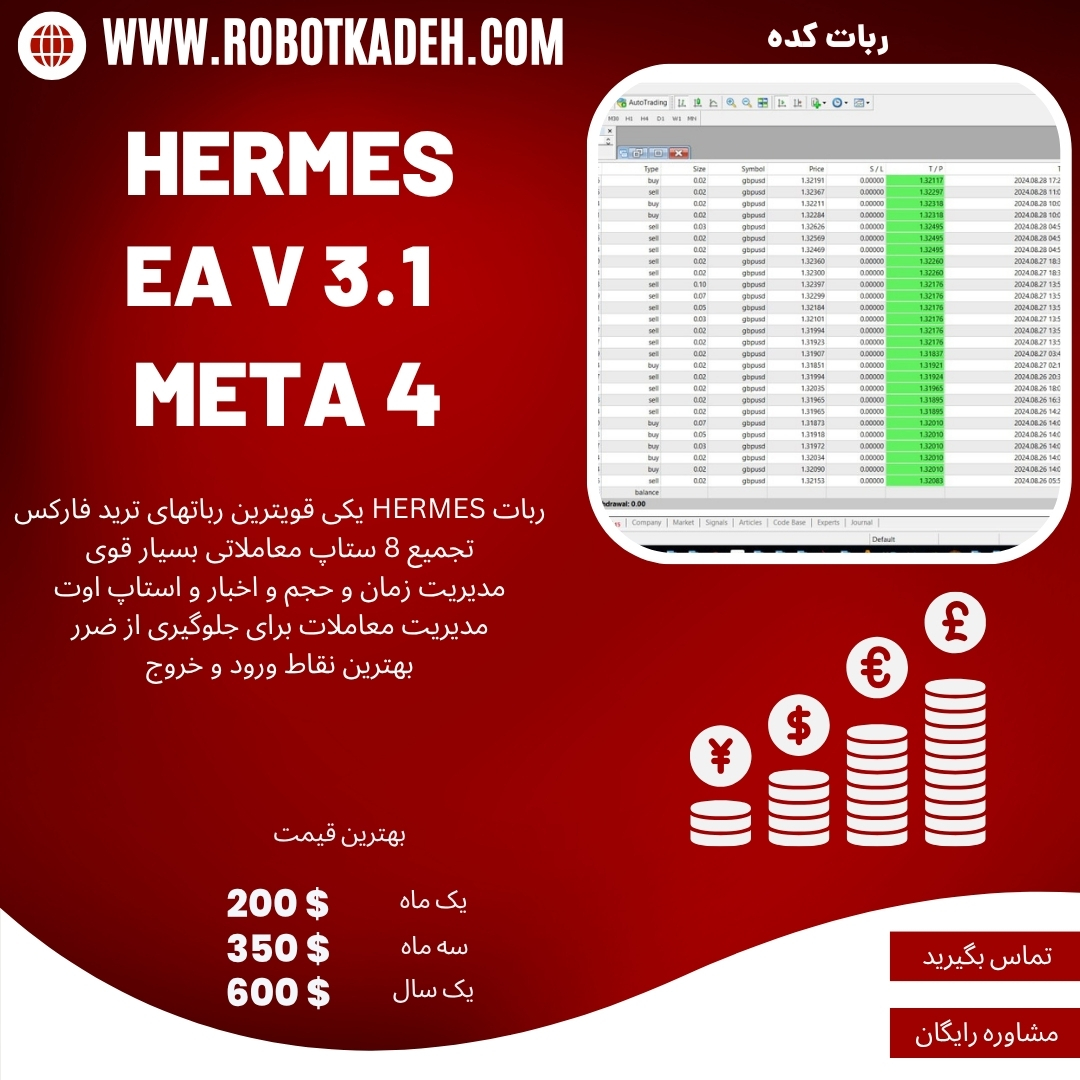 ربات فارکس Hermes یکی از پر سودترین رباتهای حال حاضر فارکس متخصص جفت ارزهای اصلی